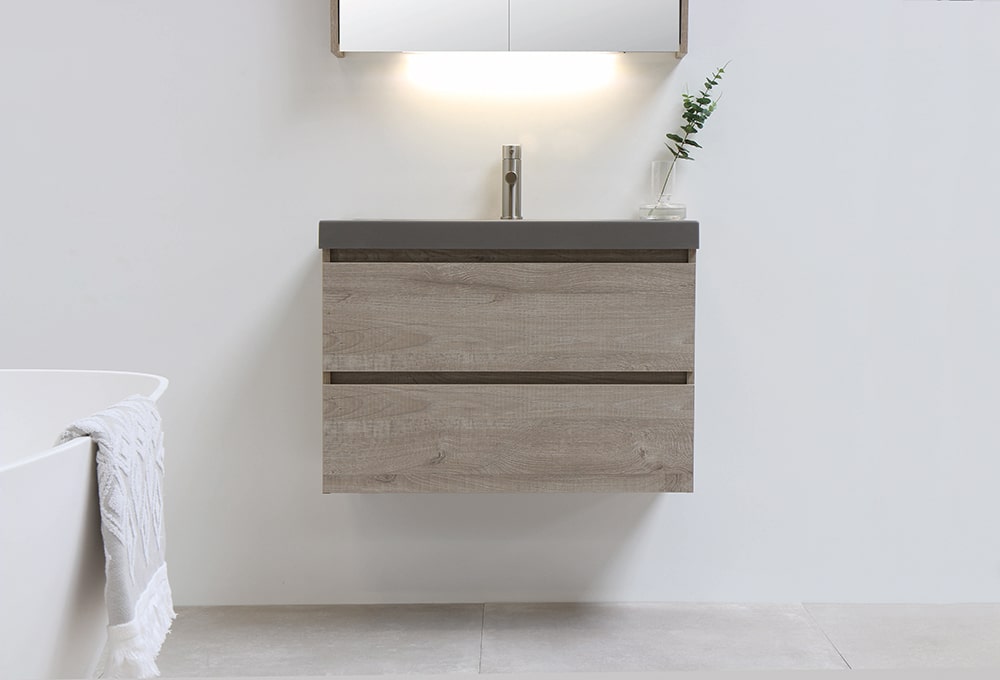 In de INK collectie vindt u vier typen onderkasten: dubbele laden greeploos met houten keerlijst, gelakt, of in hout fineer. Perfect voor moderne badkamers, vooral met een Topdeck opbouwkom. Denk eraan een afdekplaat mee te bestellen. De 40 cm diepe onderkasten bieden onbegrensde creativiteit, elk uitgerust met hoogwaardige Duitse softclose systemen. Kies de uitvoering en kleur die uw badkamer complementeert. Voor meer ruimte en opbergmogelijkheden, overweeg de 45 cm diepe collectie.